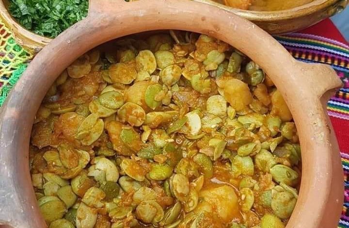 - 4 Tazas de habas verdes peladas o habas secos remojadas y peladas